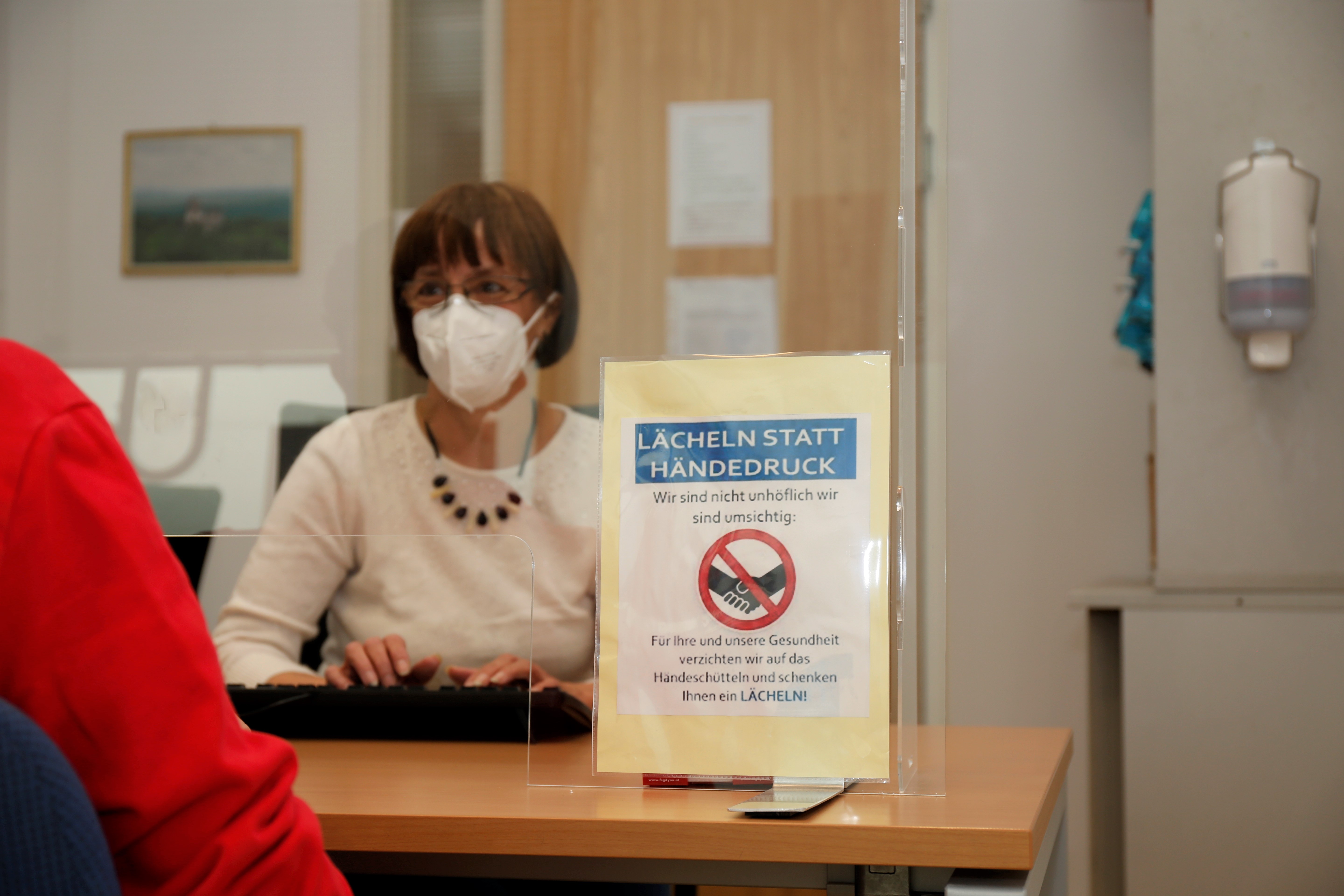 • Einhaltung der Mindestabstände: Eine Ausnahme bilden im gemeinsamen Haushalt lebende Personen. Es wird darauf hingewiesen, dass für Parteien bzw. Begleitpersonen sowohl im Parteienverkehr als auch im Wartebereich derzeit lediglich ein eingeschränktes Platzangebot zur Verfügung steht. Einlass in das Amtsgebäude kann nur gewährt werden, wenn der vorgesehene Mindestabstand eingehalten werden kann und die notwendigen Freiflächen im Wartebereich zur Verfügung stehen.